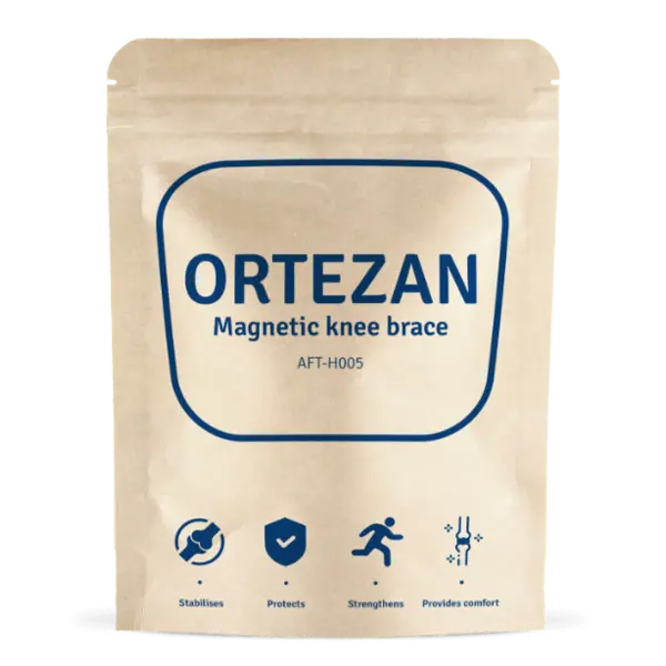 🩺 Složení | Material components of Ortezan: Two-layer soft and durable material (pleasant for the skin, breathable, elastic), Velcro closure, Special magnets (1600 Gauss strength), Non-allergenic, non-irritating materials. Key functional components: Biomagnetic stabilization (magnet therapy), Elastic structure for adjustable pressure and joint protection |